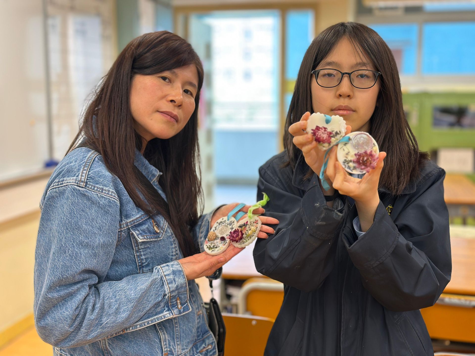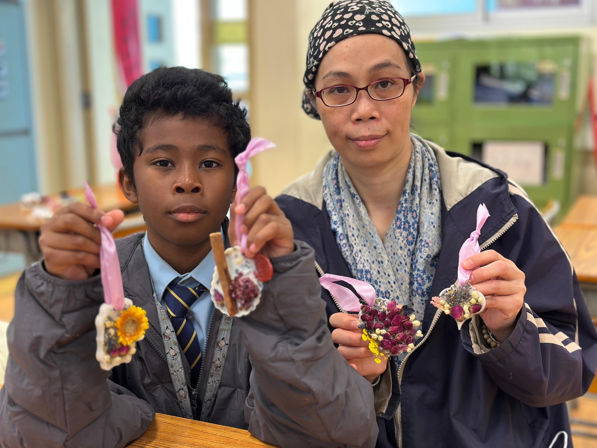 當日學生及家長忙碌地完成香薰蠟燭吊飾,大家看見自己的製成品後也十分開心。